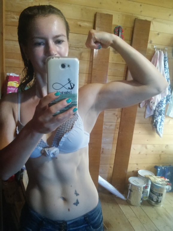 Наши достиженияНу или мне мерещится - стал вырисовываться пресс, ураа, я долго билась над рельефом! Буду продолжать в том же духе, чтобы такой был и в расслабленном состоянии. Все же питание огромную роль играет, сколько не качай!