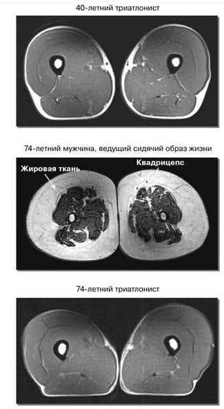 Но тут в книжке «Фитнес после 40» есть интересные фотографии о том, как сидячий образ жизни разрушает нас (с. 47):