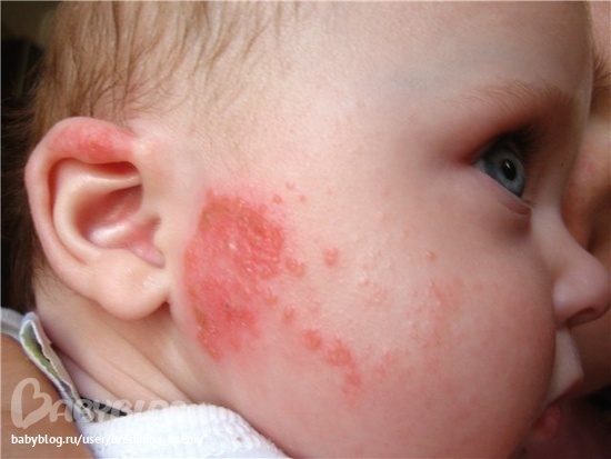 вот это отопический дерматит, тут прям видно, что это корка, весь участок кожи воспален, сплошником.