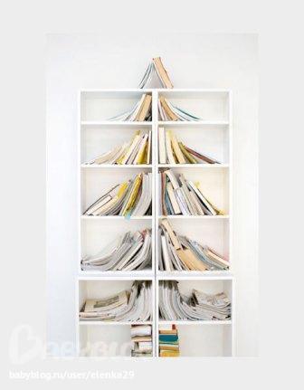 Мне кажется, что та елка, что на картинке, повреднее будет... пыль! Полки с книгами (печатными изданиями) лучше от пыли закрывать стеклом))...