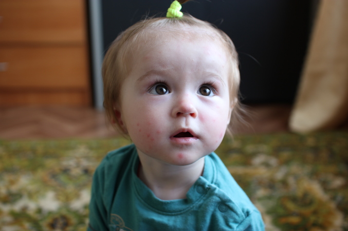 Почему спросила-иногда так на что-нибудь появляется аллергическая реакция,у старшего сына в ноябре несколько таких пятен было по телу, а одно так вообще очень сильно раздуло. Вначале тоже сказали,что укусы,только некому в ноябре кусаться то.выяснилось что аллергическая реакция.Попробуйте дать зиртек или супрастин. И помазать мазью от аллергии.Я использовала адвантан.