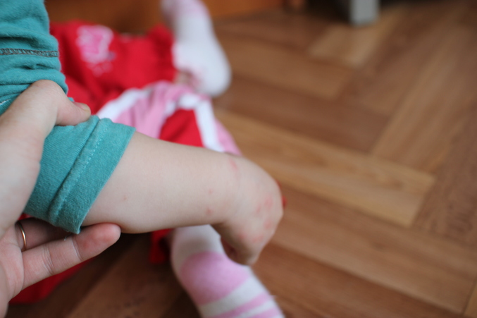 А температуры не было? У нас аллергия на укусы насекомых, точно такая же хрень, только с последствиями, темп. 39 и отёк Квинке  в этом году был. Поверьте, если у вас это всё же аллергическая реакция, то лучше не шутить, вы ещё совсем маленькие. Старайтесь оградить ребёнка от комаров у других насекомых.