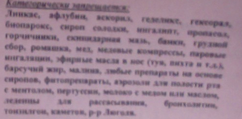 Так вот тут любые фитопрепараты, эфирные масла и паровые ингаляции запрещены - ттт на травку реакция пойдет.