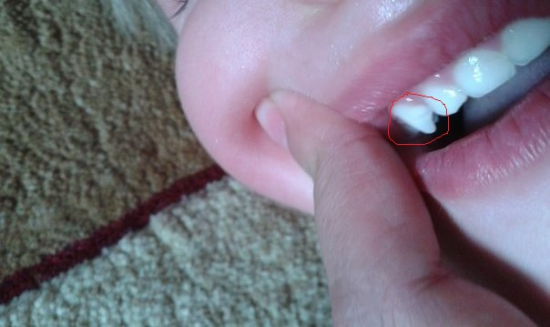 ЗубкиРебенку 2 года и 4 месяца. Сладкое не едим практически. Очень-очень редко. Зубы чистим 2 раза в день. На клыке справа обнаружила белое пятнышко. Что это такое? Оно не счищается. А как бы внутри. К стоматологу пойдем на следующей неделе