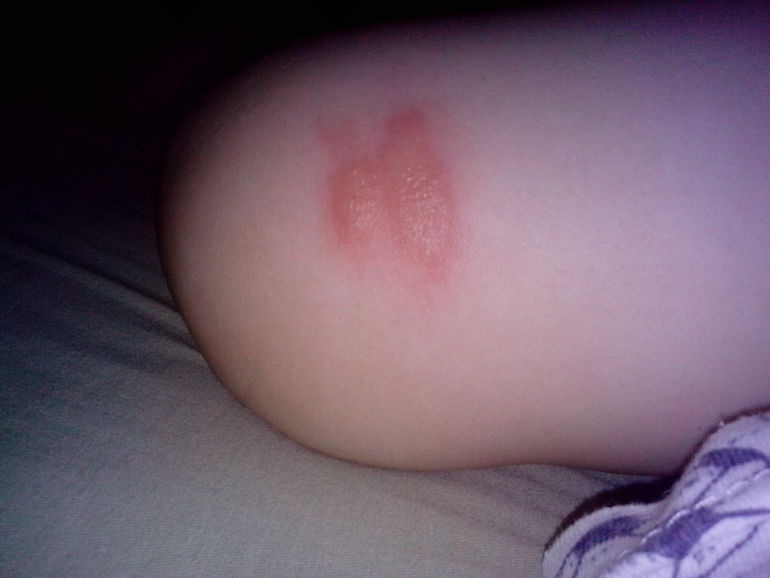 Укусы насекомых!Девочки что это??? проснулся утром а на ножке вот это твердое на ощуп и горячее, сын за ножку берется, мажу фенистилом. нас кусали комары, но там совсем по другому выглядит... мы еще и в гостях у бабушки, у нее нет сеток на окнах, может и гадость какая залетела, хотя она говорит что похоже на ожег, но он его ни где не мог получить.... может к врачу в пон. сходить?...