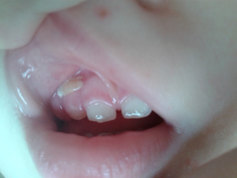 ЗубкиРебенку 1,8, лезут клыки, но эта штука над зубом, который уже вылез, но, правда, еще коротенький.