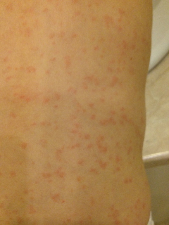 Высыпания на кожеДевочки, началось все с температуры: первый день 37,7 и выше поднималась только ночью, но не более 38,5. Через день уже доходила до 39,2. Никаких других симптомов не было. На четвертый день педиатр выписала антибиотик и сказала, что немного красное горло. Антибиотик сразу температуру сбил и два дня она была нормальная. Потом снова начала подниматься до 38,3 и продержалась на этом уровне сутки, проявился насморк легкий. Сопли не текут, нос дышит, но внутри они сидят и по чуть-чуть иногда выходят (промываю аквалором). И вот оно, на десятый день с начала болезни высыпает сыпь: сначала немного на грудке, потом буквально за пару часов везде по телу (спина, грудь, живот, лицо), на руках немного, на ногах вообще единичные высыпания. Через сутки она немного побледнела, но появилось много высыпаний на ногах. Педиатр на больничном, но по телефону говорит, что аллергия.