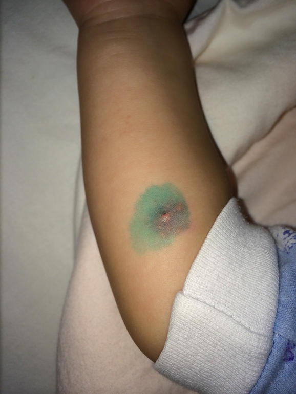 Спасибо. Вроде похоже . Буду наблюдать. Она не чешет это место и поэтому можно смазывать. Дерматолог он-лайн предположил герпесное высыпание, но я что-то не уверена. Помазала вчера днем зеленкой, вечером ацикловиром..