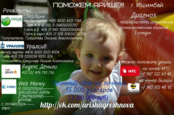 Группа помощи Арише https://vk.com/arishagreshnova