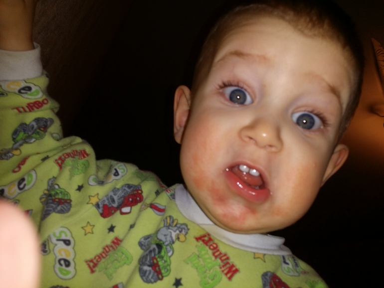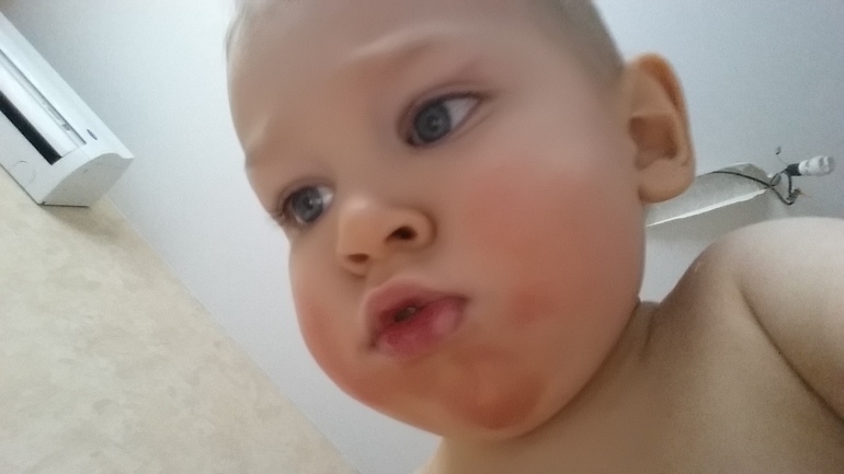 Сегодня после ванны решила сфоткать для вас его обветренные щечки и вечно мокрый подбородок.
