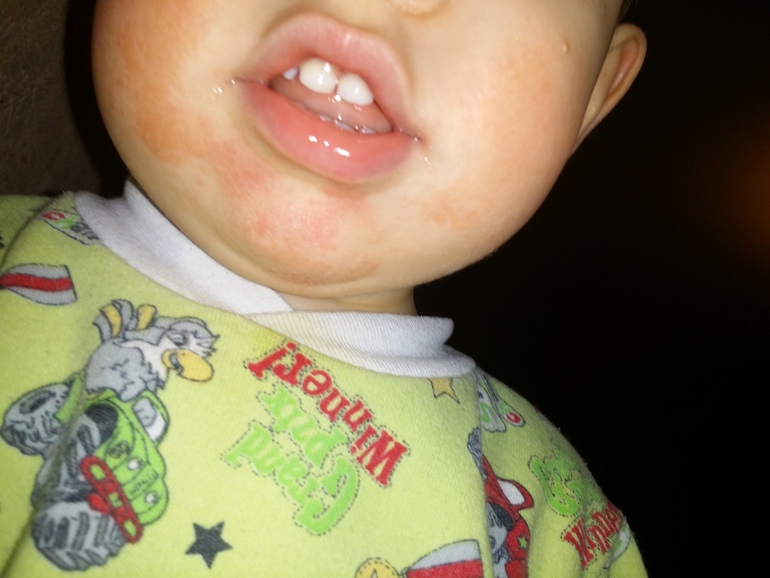 у старшего уже около месяца пунцовые щеки и подбородок! лезет 6 зубов! постоянно чешется!! кожа стала сухой на теле, особенно на коленях-прям наждачка! вчера дала первый раз зиртек 5 капель: чесаться стал меньше, краснота немного спала. молоко и сахар перестали давать! спрашиваю тут потому как наш педиатр это все видела и сказала что это из-за слюней... даем творожок агуша-остальное все варится на пару!