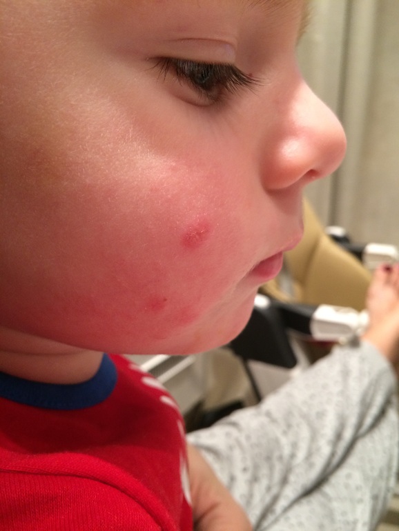 Вот сегодня еще 2 точки на одной щеке. Он их не трогает,они не чешутся