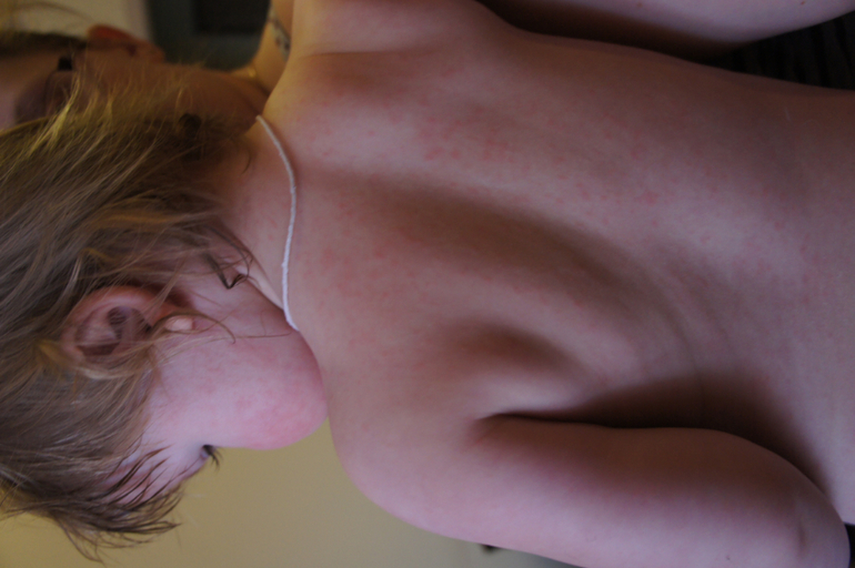 Как появилась сыпь, температура больше не поднималась, но горло красно- богровое без налета. никаких других симптомов насморк, кашель - нет и не было
