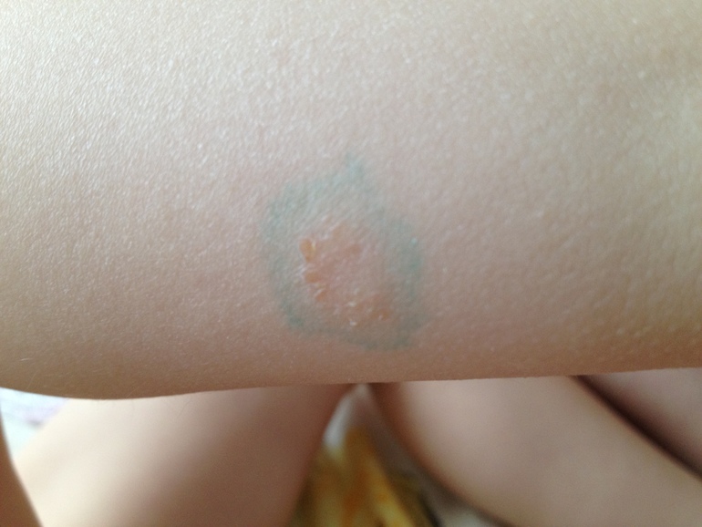 И еще на ножке вот такой сухой участок. Появился задолго до сыпи, но изначально был меньше, примерно 3 мм в диаметре. Сейчас уже больше где-то около 1 см и за последнюю неделю больше пока не увеличивается.