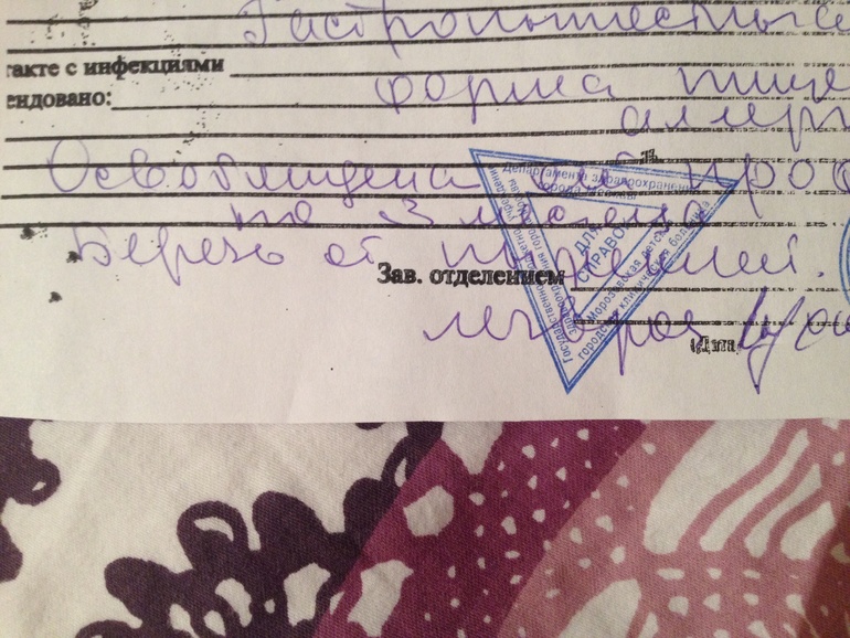 Впринцыпе да, Ц похожа на ее Щ. Но буквы Ф нет совсем. Но и подходящего слова больше нет. А в справке там больше ни чего не написано только ФИО, дата рождения и дальше диагноз, отвод от прививок и эта фраза. Я внизу писала