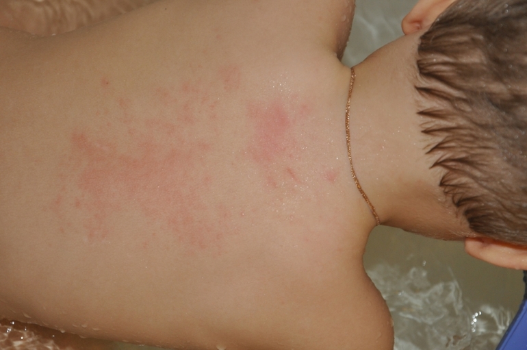АллергияВот такая красота второй день мучает сына. Когда потеет или купаемся - чешется. Днем не смог заснуть, видимо зудело. Найти причину сложно, поскольку периодически ест всякое, хоть и в небольшом количнстве, в том числе вчера съел кусочек вафли. Новых продуктов не вводили, питание отлаженное и ничего до этого не беспокоило.