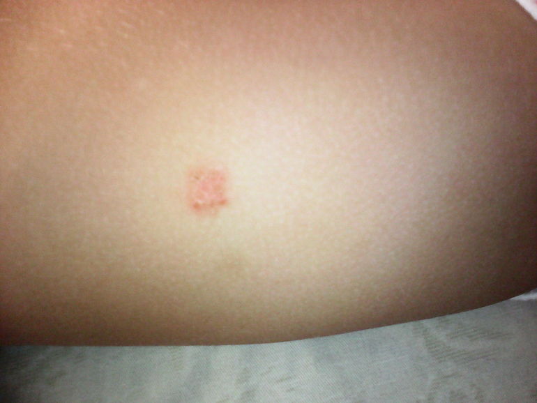 . не знаю видно ли на фото, похож как на подсыхающий герпес. Но все же что это?Вскочил 2 недели назад прыщик на ножке, похож на камариный укус, малышка начала переодически честь его, а теперь он стал такой