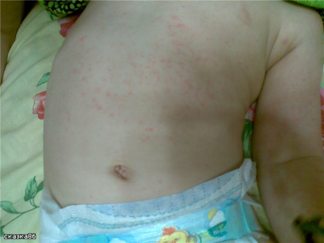 Высыпания на кожеДевочки! У ребенка на теле пятна, вроде ничего не ела из продуктов нового. Что это?