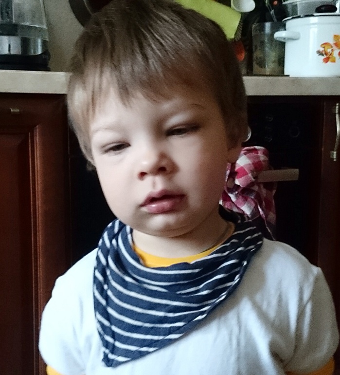Два дня прошли достаточно тяжело. Сильный насморк. Почти не ел. Много спал. В понедельник я свалилась с той же инфекцией, у Яси наоборот улучшилось настроение! Носился, бесился. Вызвала во вторник маму к себе, чтобы помогла мне больной с таким активным малышом. Но На Ясю с раннего утра страшно смотреть было, весь опухший, тяжело дышит, периодически повышалась температура. Но насморк поменьше. При виде бабушки рыдал, хотел быть только с мамой. Пришлось отпустить бабушку. После дневного сна температура 39. Дала нурофен в сиропе. Дышал безумно тяжело и часто. Жаловался на боль в горле. С температурой постепенно уходила тяжесть и улучшалось настроение. Но все равно хуже, чем вчера. Ближе к вечеру пришел врач, сказала, что хрипы хуже, чем в субботу. Горло красное, но не жуткое. Добавила прием антибиотика Супракс, на ночь капать називин, сказала, что если после беродурала дышать не легче - делать ингаляцию с пульмикортом. Если болит горло, сказала, что можно пшикать Тантум Верде. Но с температурой делать ингаляции нельзя.