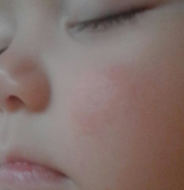 АллергияНе понимаю, что происходит( Полтора месяца назад у дочки бьіло красное пятно на щеке, тогда я определила, что алергия на апельсин. Убрала, все прошло где-то через дней 10. Потом личико бьіло чистое до сих пор. Полторьі недели назад щечки начали краснеть.Цитрусов она даже не видела. В питание ничего нового не вводили, ест она уже давно все продуктьі, все которьіе позволеньі в ее возрасте! Неужели снова пробовать исключать что-то? Может ли бьіть такое от жарьі? Фото сделала во время сна, здесь щечки сухие и немного лишь красноватьіе, но когда начинает бегать, краснеют больше. Я заметила, что если жара на улице, вообще сильно красньіе.... Что делать?