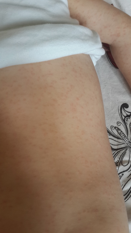 На прошлой неделе нам прописали антибиотики Аугментин + тонзилгон + синупрет + кучу лекарств. На 5й день приема нас обсыпало мелкими прыщиками. Обсыпало всю. Кроме лица., попки. Особенно ярко внутренняя сторона рук, место где резинка от трусиков. спина. Разумеется все препараты отменили. Назначили полисорб. зодак. болтушку. обильное питье. сегодня второй день приема, а динамики никакой. Прыщики эти никак дочку не беспокоят (кроме того что мамка ненормальная мажет их циндолом), не чешутся. Температуры нет. Аппетит есть. Настроение хорошее. Стала жаловаться на животик (не дизбак у нас часом?). Кто сталкивался? Динамика должна сразу быть или через какое-то время? На всякий случай сегодня сдала анализ крови расширенный. При первой возможности сдам капрологию и мочу. Ну и на глисты с острицами. Если потребуется узи сделаем. Но сейчас выходные - даже платные клиники у нас не работают. Мамка - сумасшедшая. Страстей начиталась, пришлось персенчику выпить... Фото под катом. у кого такое было?