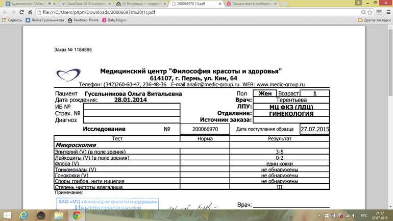 Ну так грибы же не обнаружены, эпителий и лейкоциты в норме. Я думаю по анализу все хорошо тут.