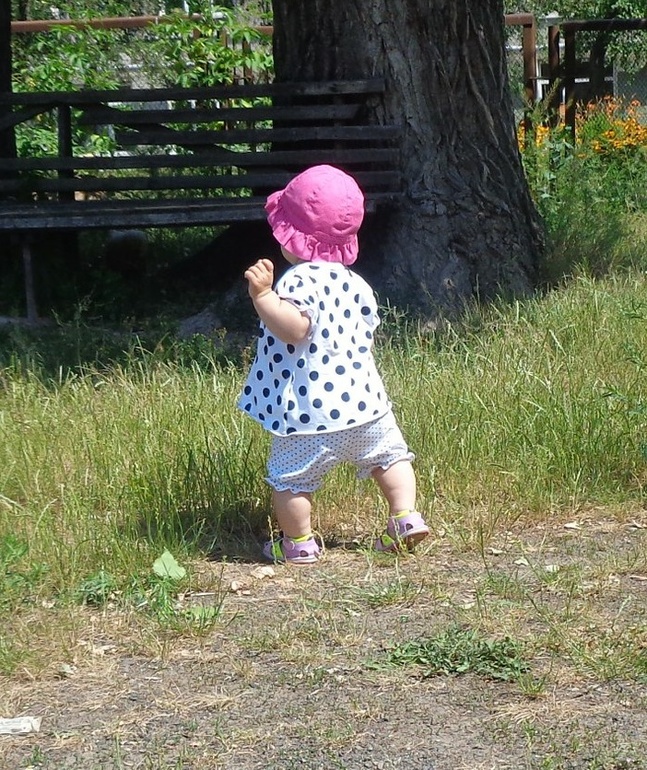 Фото подходящее не могу найти, на первом фото хоть и в шортиках, но видно что ножки вот так колесом. Первые шаги сделала почти в 9 мес, а сама без опоры пошла через месяц, не учили, не заставляли, иногда за ручки водили, но редко. Сама встала и сама начала ходить.