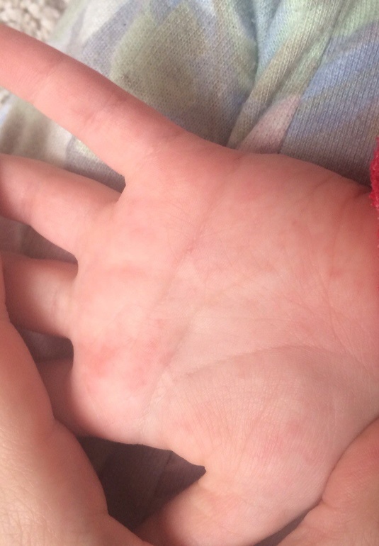 Высыпания на кожеВрач говорит энтеровирус. Но сыпь то есть то нет. Во сне пропадает совсем... Уже неделю как появилась. До этого неделю темпа была (не высокая). Сыпь на одной ладошке и на кистях. На спине мелкая тоже ...все!