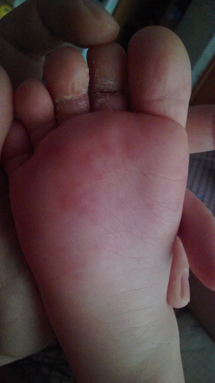 Врач сказала что это избыток аскарбиновой кислоты, назначила мазать цендолом. На одной ножке прошло,а на второй лопнул пальчик и появились пятна на ступе(