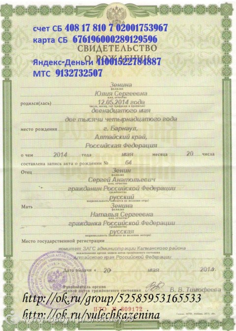 Спасибо от 6 наших сердец - мамы Наташиного, папы Сережиного, Олесиного, Аришиного, Полининого и самого маленького, самого нуждающегося в Вас - Юлечкиного сердечка