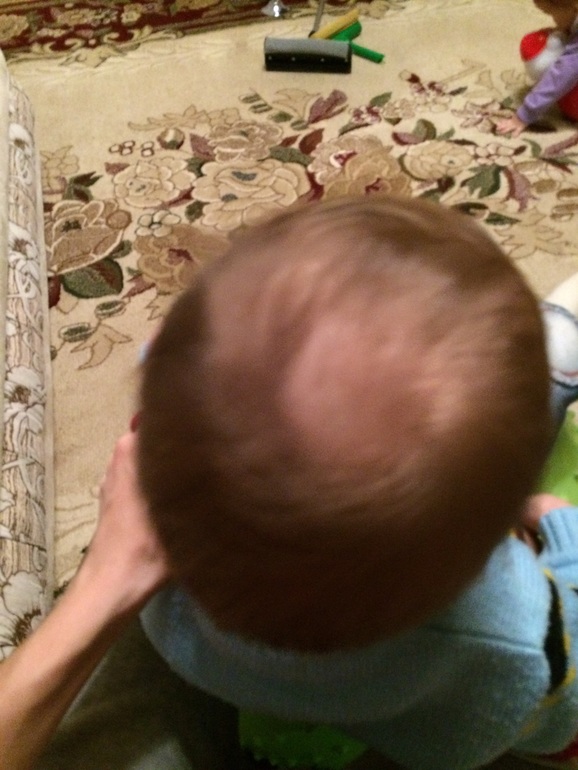 Волосики на макушке стали короче и поредели. Буквально в выходные заметила немного, а это фото уже вчера!! Такими темпами и полысеем(( но кожа головы абсолютно чистая. Немного леп, но он иногда у нас появляется. Сегодня пойдем к врачу . Сынок еще когда пьет с бутылки, крутит там часто волосы. Может просто витамин не хватает каких. Или то первые звоночки..