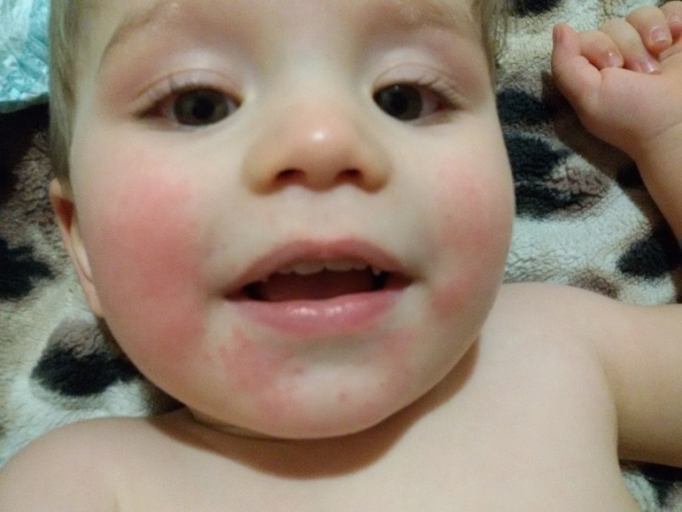Нам поставили диагноз атепический дерматит. Приписали строгую диету, антигистаминное, пробиотики, и мазь. Сейчас практически ничего нет, лицо чистое