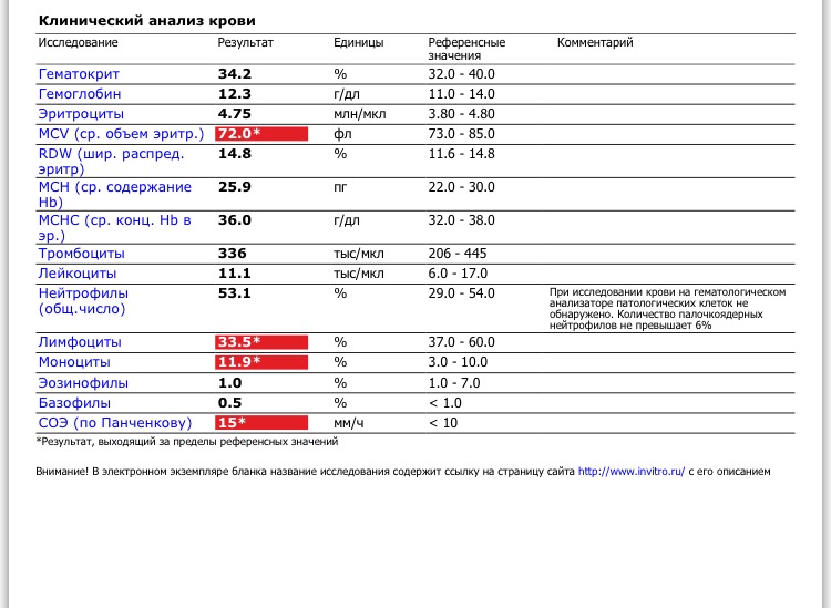 Анализы, УЗИ, Рентгендобрый день! Девочки, кто разбирается в анализах крови, подскажите что у нас. В прошлый вторник была температура 39, держалась два дня. Из симптомов кашель, насморк, промывали нос, пили ромашку, геделикс. Вроде все проходить стало, в воскресенье стало хуже, поднялась температура 38,3, не сбивали, сама прошла, в понедельник уже не было, вчера опять поднялась до 38. Приходил сегодня врач, кровь посмотрела, сдавали в понедельник, назначила клацид, посмотрела гордо сказала очень красное. Из симптомов густые желтые сопли, кашель уже несильный, сегодня температура 37,3. Ещё зубы наверное у малыша, плачет и игрушки грызёт