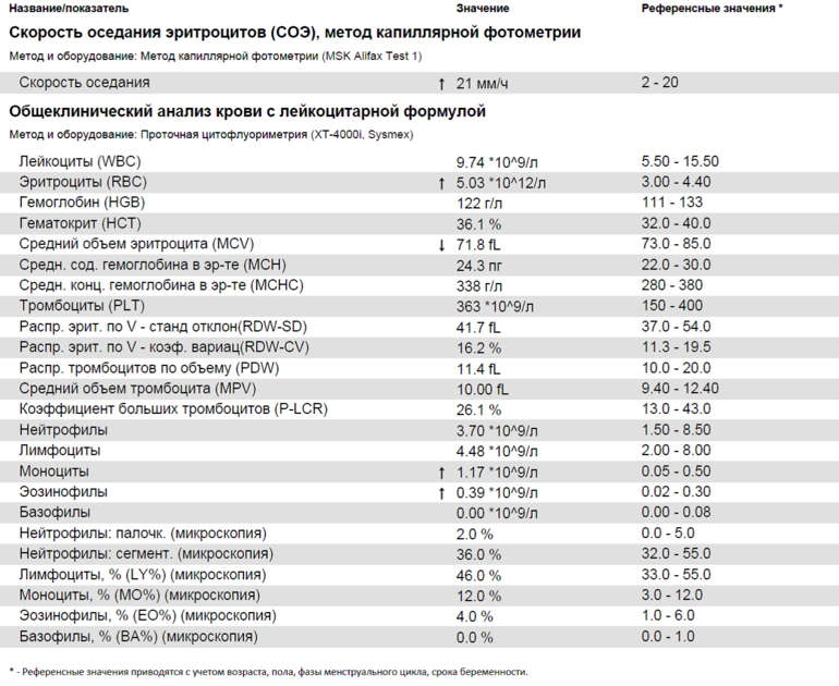 Повышен СОЭ - 21 при номе 2-20. Странная норма указана лабораторией!! По табличкам, которые у меня есть норме- 4-12.