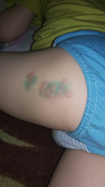 Врачу показаться обязательно! Но у нас так аллергия протекала, дала ребенку в 8 мес клубнички, на следующий день на крестце пузыречки такие же были, давала антигистаминное и мазала Деситином, быстро прошло.