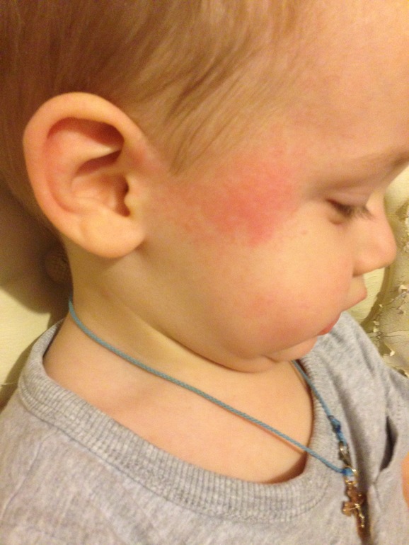 АллергияСегодня утром встали, а у нас пятнышко на виске и щечке. Оно как бы состоит из мелких точек. Вчера не ударялись, вроде не ели не чего аллергенного. Очень переживаю(