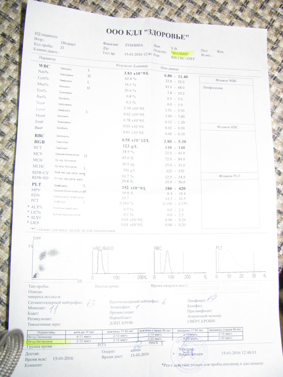 Мне кажется, вы поторопились со сдачей крови, если сдали ее на 1-2 день болезни. Лейкоциты ниже нормы, что свойственно вирусным инфекциям. Но настораживает лимфопения, причем как абсолютная, так и относительная. В остальном у ребенка по описанию ОРВИ.