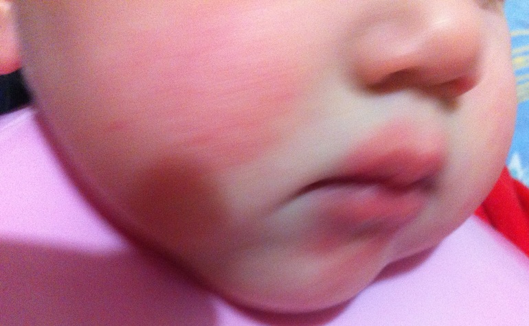 Похоже еще как-будто от мороза) Мажьте кремом лакричным. Ну, а все же, если есть возможность, позвоните, спросите у своего педиатра, если это аллергия. Как правило, аллергия имеет накопительный эффект и то, что вы покушали недавно проявилось только сейчас, когда ни на что и не подумаешь) Не болейте!)