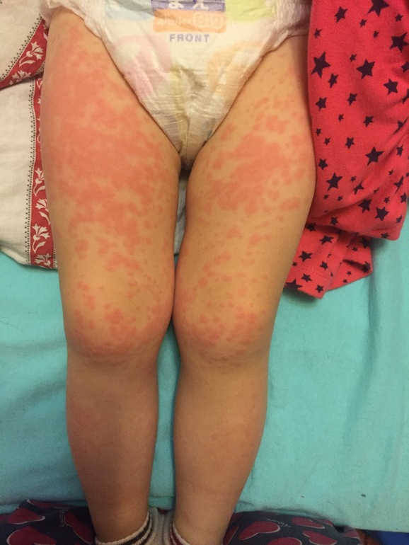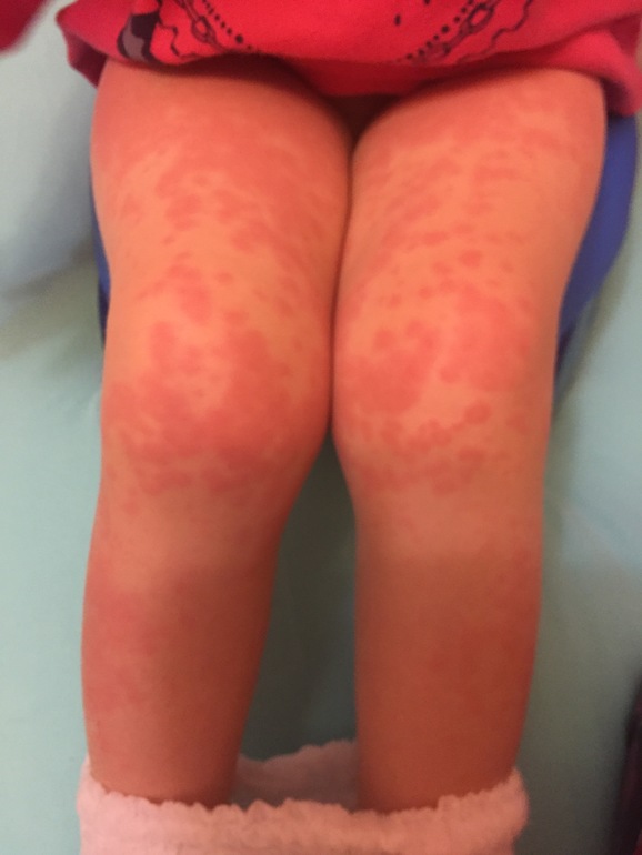 А у вас пальцы, губы не отекают? У меня такая сыпь недавно была, но я уже взрослая, врач сказал аллергия, до сих пор лечусь. На вас посмотрела, теперь сомневаюсь, что аллергия. Еще думали токсин какой-то в организм попал, тк все резко началось , а до этого тоже была простуда и горло болело