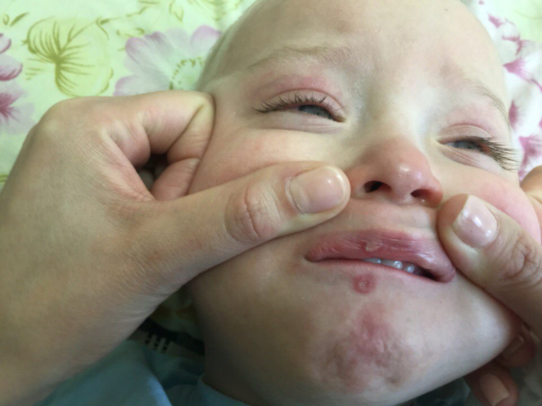 Высыпания на кожеДевочки, у сына на губах и на подбородке вот такие болячки. Язычок в язвочках, не даёт сфотографировать. От еды отказывается