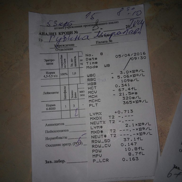 А еще в карте обнаружила анализ годовой давности и там тоже картина плохая, но нам слова тогда никто не сказал. Я помню как звонила врачу и она мне сказала, что анализы у нас хорошие