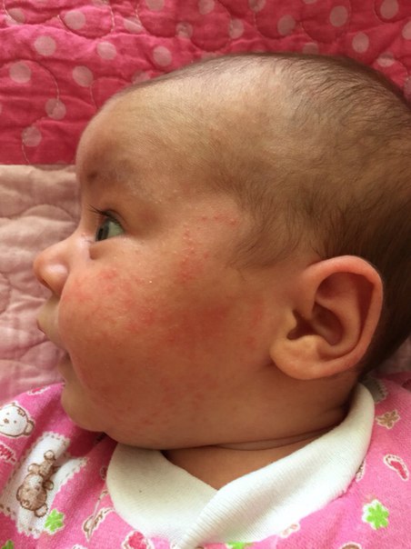 У моего ребенка похоже было,но меньше.Перестала есть овсянку и свежее молоко,перестало высыпать.Молоко только кипяченое пила.