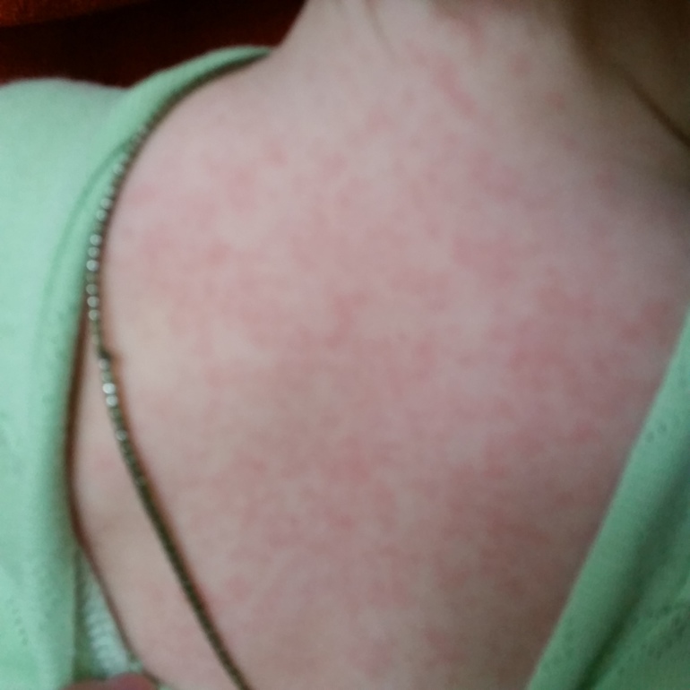 У сына в 1,5 года неожиданно высыпало, по всему телу. Вызывала скорую. Сказали крапивница. Начиналась с волдырей, а потом вот такие же пята. После супрастина ему становилось лучше. Был жидкий стул и температура на кануне. Но скорую вызывала не 1 раз, ему даже укол делали.