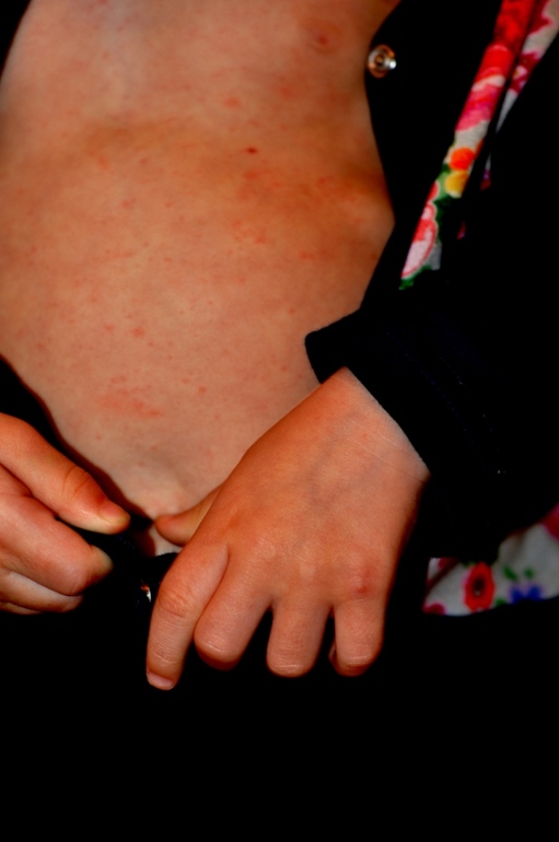 вчерашние (с повышенной контрастностью)Контрастность и яркость изменила, т.к. вечером со вспышкой плохо видно на фото сыпь -![]()
