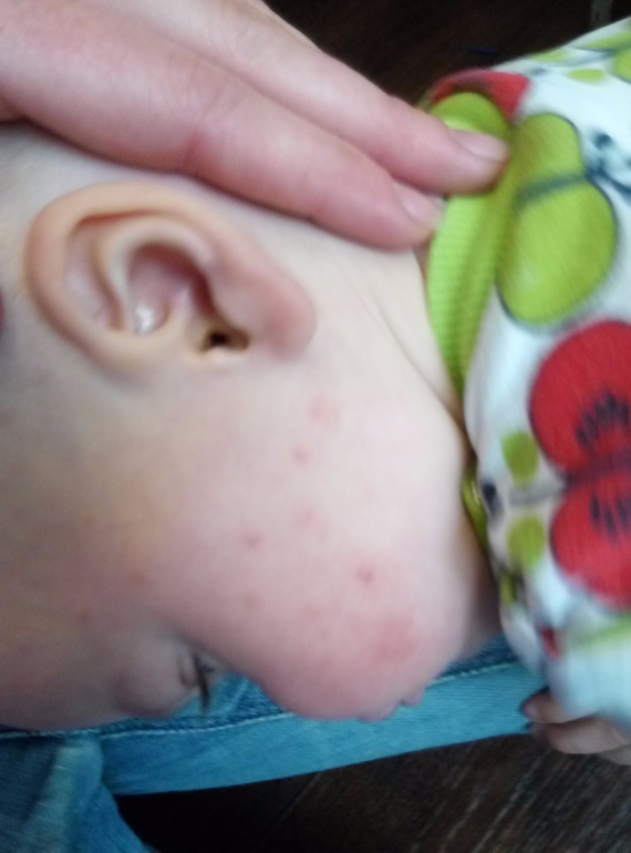 . Появились 3 дня назад. Не чешутся, ребенок обычно себя ведет, темп нет. На окнах москитки, на улице дожди, сидим дома комары исключены. Есть на щеках, голове в волосах несколько и 2 на руках