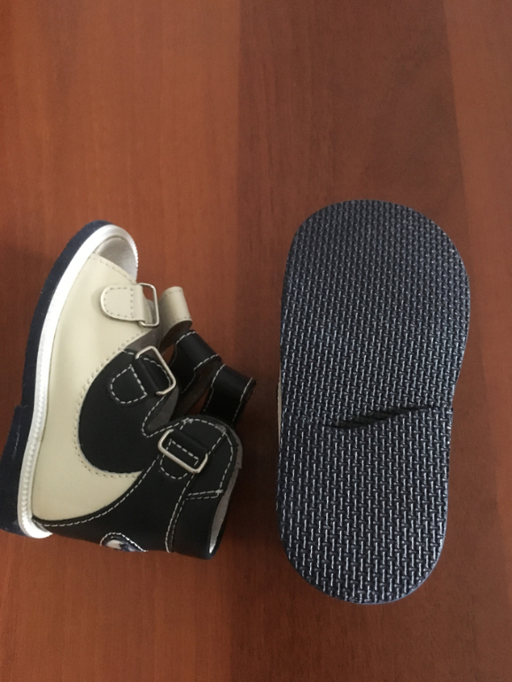 Для лечения от варуса (косолапости). Отводят ножку ребенка в правильном направлении. Произведена в России по специальным ортопедическим колодкам с анатомическим профилем. Плотная фиксация стопы и достаточная высота моделей. Плотность фиксации достигается за счет регулирующихся застежек «велькро». Формованный жесткий задник с продленным внутренним и наружным берцами, позволяющий фиксировать голеностопный, подтаранный и тарано-ладьевидный суставы в физиологически правильном положении, что при постоянном ношении предупреждает развитие деформации. Ригидная подошва с заложенным перекатом стопы в носочной части, что помогает при ходьбе правильно ставить стопу. Каблук Томаса (продленный внутренний край) позволяет стабилизировать стопу.