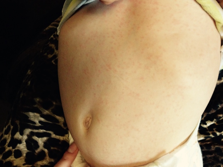 Т.е темпа была в сб,вс, и пн,а потом спала и сыпь?это картина розеолы.а на прививку кпк у моего сына была легкая сыпь на 8 ые сутки,и лишь на животе