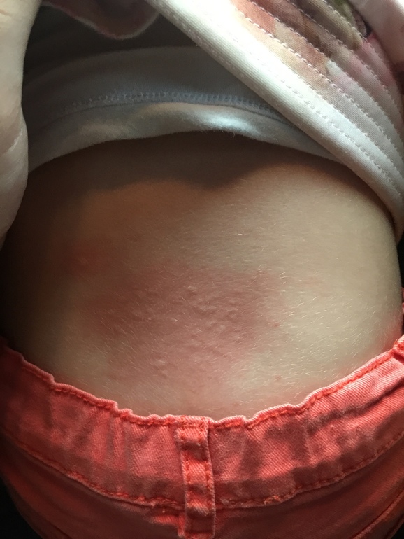 Высыпания на кожеДоброй ночи. Девочки,что это за сыпь такая? Фото ниже. С таким сталкиваюсь впервые. Имени ребёнка 2 лет. Сыпь началась такая сегодня. Хаотично. Проходит сама через 15-20 минут. И появляется в другом месте (лицо,руки,живот,спина,шея). Ничего нового не ела. И почему она сама так быстро проходит? Точно никто не покусал. С субботы капаем в глазки Тобрекс. Такая запоздалая реакция на него? Или запоздалая реакция на жару? У нас сегодня прохладно. Что мне с этим делать? Чем то мазать? Сыпь даже врачу не смогла показать она пришла уже не было ничего.