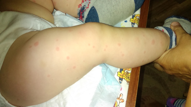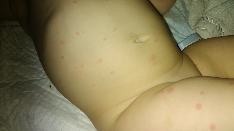 Высыпания на кожеДевочки, посмотрите, пожалуйста,что это может быть. Проснулся сегодня ребенок весь в сыпи. Кроме головы и шеи. Пятнышки не шершавые,без серединки,просто покраснения. Нам вчера делали манту. Может такая реакция быть?