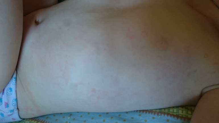 АллергияПозвонили с сада-забирате ребёнок весь в пятнах. Прибежала и ужаснулась!!! Сыпь на животе и попе в основном, чуть ноги и руки.